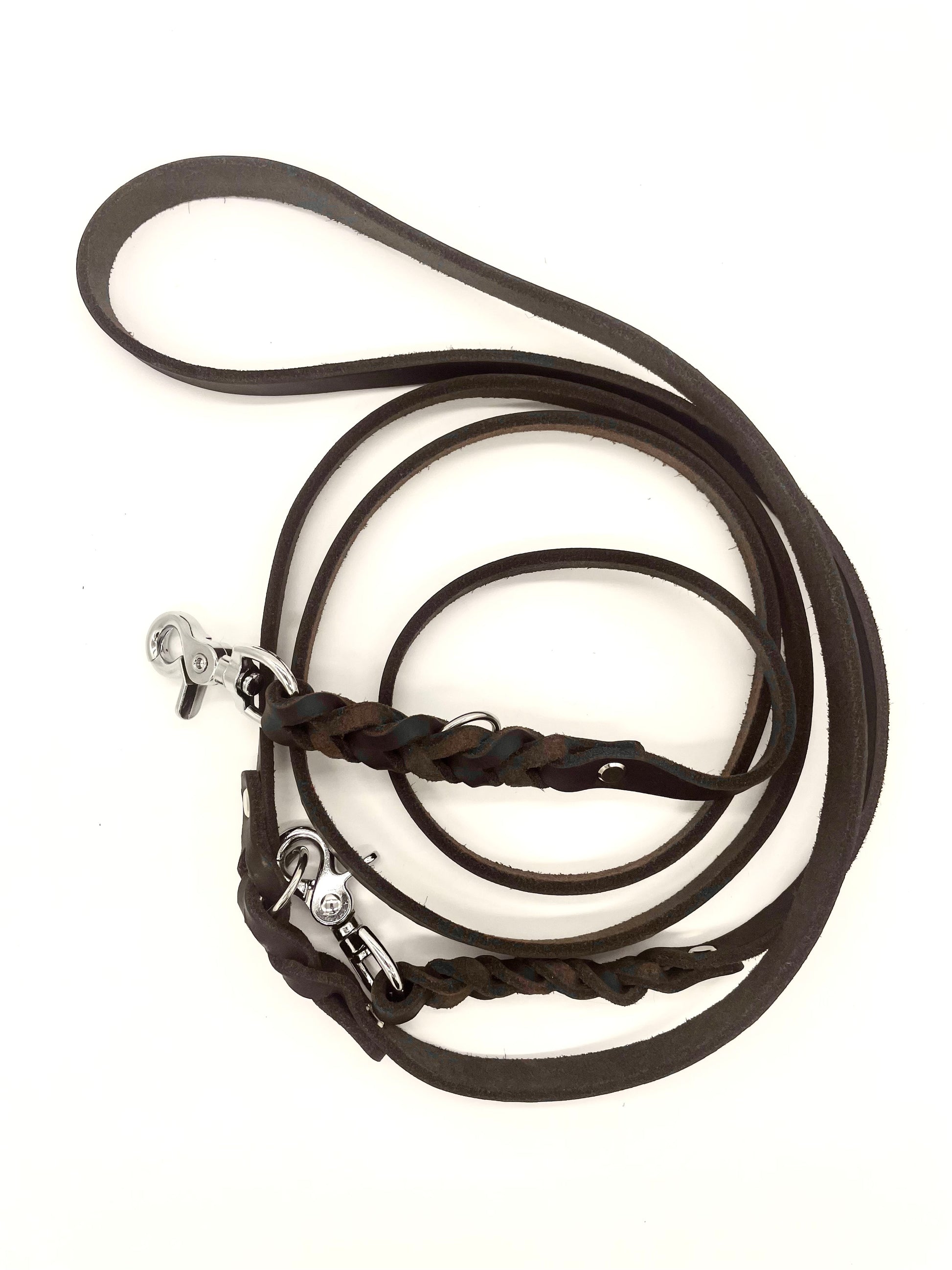 Fettlederleine "Ginevra" - in Dunkelbraun & Silber (lang)